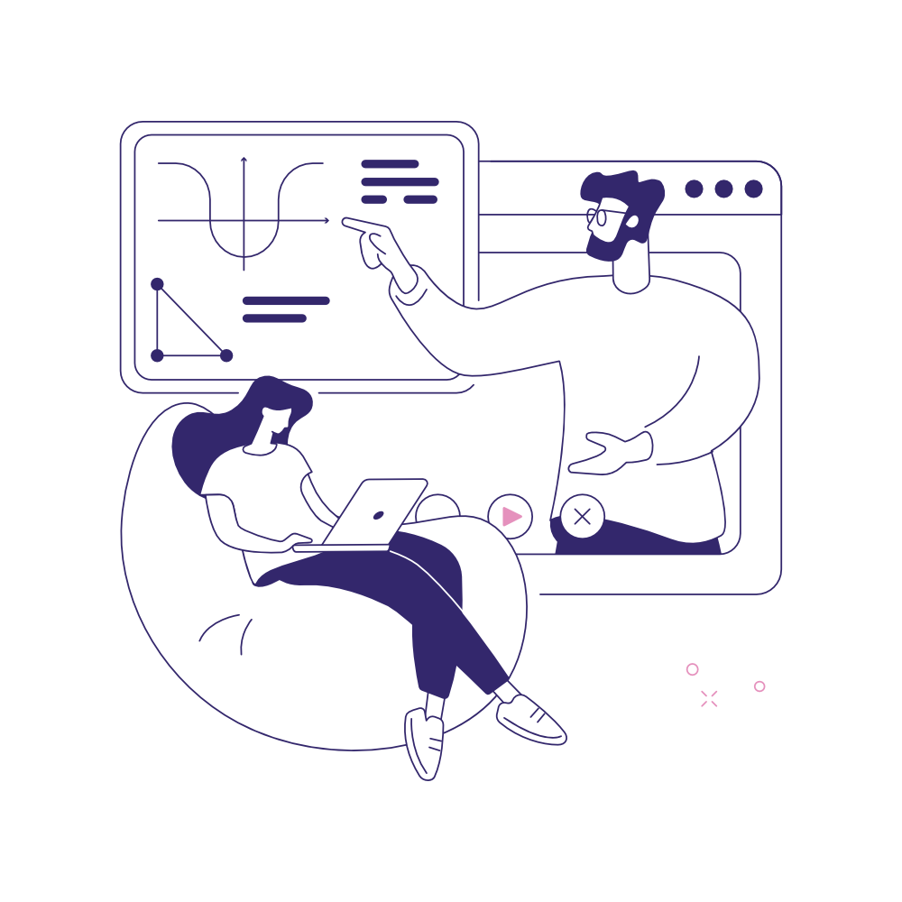 Synchronous learning happens in real-time, think webinars or live chats, while Asynchronous learning allows learners to study outside the constraints of time and place, such as videos, PDFs, and discussion boards.